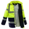 Kurtki ostrzegawcze Vizwell VWJK05 to długie modele z grubą pikowaną podszewką o gramaturze 180g/m², zapewniające ochronę w złych warunkach pogodowych. Wykonane ze 100% poliestru 300D "OXFORD" z powleczeniem poliuretanowym, są w pełni wodoodporne dzięki szytym i zgrzewanym szwom. Dostępne są w dwóch kontrastowych, fluorescencyjnych kolorach: pomarańczowo-granatowym (VWJK05ON) i żółto-granatowym (VWJK05YN).