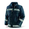 Wodoodporna kurtka z zintegrowanym kapturem zwijanym w kołnierzu została stworzona, aby zapewnić bezpieczeństwo i wygodę podczas codziennej pracy. Taśmy odblaskowe o szerokości 5 cm przyszyte na wysokości klatki piersiowej oraz przy łopatkach, a także na przedramionach zadbają o naszą widoczność po zmroku. Kurtka zapinana jest na zamek błyskawiczny z dodatkową regulacją w pasie za pomocą sznurka. Zewnętrzna warstwa zapewnia optymalną ochronę na czas pracy w warunkach deszczu i wilgoci.