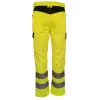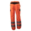 Spodnie robocze, ostrzegawcze o intensywnej|widoczności, dostępne w dwóch|kontrastowych kolorach:|VWTC149OB – fluorescencyjnym pomarańczowym/czarnym|VWTC149YB – fluorescencyjnym żółtym/czarnym|Wykonane z materiału fluorescencyjnego poliester|80%,bawełna 20% o gramaturze 300g/m² oraz|czarnego kontrastowego poliester 65%,|bawełna 35% o gramaturze 245 g/m²|Materiał użyty do nakolanników: 450D Oxford|Taśma odblaskowa – 25 prań w temperaturze 40°C,|5 prań na sucho.|Zapinane na guzik i zamek błyskawiczny|Kieszenie w talii, z tyłu i na nogawkach