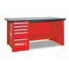 - Stół z jedną szafką z szufladami. Szafka narzędziowa posiada 5 szuflad z prowadnicami kulkowymi, o wymiarach 588x367 mm, 3 o wysokości 90 mm, 1 o wysokości 180 mm i 1 o wysokości 280 mm. Wyposażona jest w centralny zamek. Do szuflad pasująwkłady profilowane na narzędzia. Blat roboczy z drewna klejonego wielowarstwowo, laminowanego tworzywem sztucznym, posiada trzy otwory służące do mocowania imadła 1599F/150 (do zamówienia oddzielnie).