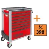 Wózek narzędziowy z zestawem narzędzi we wkładach profilowanych, 398 elementów, czerwony, seria Beta Worker, model BW2400S/R8/E-L