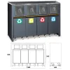 - solidna rama z blachy z 4 pojemnikami z uchylnymi drzwiczkami do sortowania śmieci