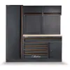 Beta 4500/C45PRO/EW to solidny i funkcjonalny zestaw mebli warsztatowych dla każdego warsztatu. Dzięki wysokiej jakości wykonania oraz praktycznym elementom składowym, zestaw ten jest idealnym rozwiązaniem dla profesjonalistów, majsterkowiczów i klientów indywidualnych. Wybierając ten zestaw, zyskujesz nie tylko miejsce do pracy, ale także porządek i wygodę podczas wykonywania różnych prac warsztatowych. Zestaw składa się z szafy jednodrzwiowej, modułu stałego z 7 szufladami oraz wielowarstwowego drewnianego blatu roboczego, dwóch szafek wiszących, dwóch paneli perforowanych, trzech wsporników oraz drewnianego blatu roboczego, wykonanego z płyty MDF pokrytej stalą nierdzewną.