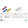 Złącza doczołowe izolowane|Materiał końcówki: miedź cynowana|Materiał izolacyjny: polichlorek winylu (PVC)|Poziom samogaśnięcia izolacji: UL94 V0|Temperatura robocza: maks. 75°C|Napięcie nominalne: maks. 300V