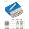 Znaczniki stalowe do znakowania detali z siłą do 1600 N/mm2 czoło okrągłe, zaokrąglone grawerowanie Znaczniki wykonane z wysokiej jakości stali narzędziowej wykończenie powierzchni gładko-matowe Każdy znacznik jest opisany: - odciskany symbol - wysokość znaku - gwarancja jakości - międzynarodowy znak ochrony oczu - twardość na grawerce 58-60 HRC, twardość czoła 38-46 HRC - wysokość znaku: od 2 do 10 mm - zestawy pakowane w pudełka z niebieskiego tworzywa sztucznego Zaokrąglona krawędź grawerki (r=0,3 do r=0,6 mm zależnie od wielkości znaku) zapobiega powstawaniu pęknięć w znakowanej powierzchni, a przy małej grubości materiału jej przebiciu na wylot. Mogą być stosowane do znakowania elementów mocno obciążonych, nadają się też do znakowania materiałów miękkich, takich jak aluminium, ołów, tworzywa sztuczne, drewno, skóra i karton.